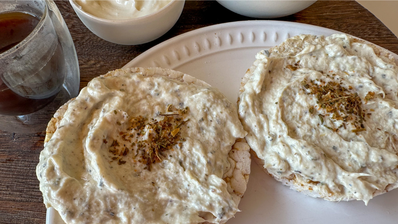 Lanche natural de frango, essa pastinha com iogurte natural, frango desfiado e creme de ricota combina com torradinhas ou com bolachas de arroz. Opção perfeita para o café da manhã ou lanche da tarde.
