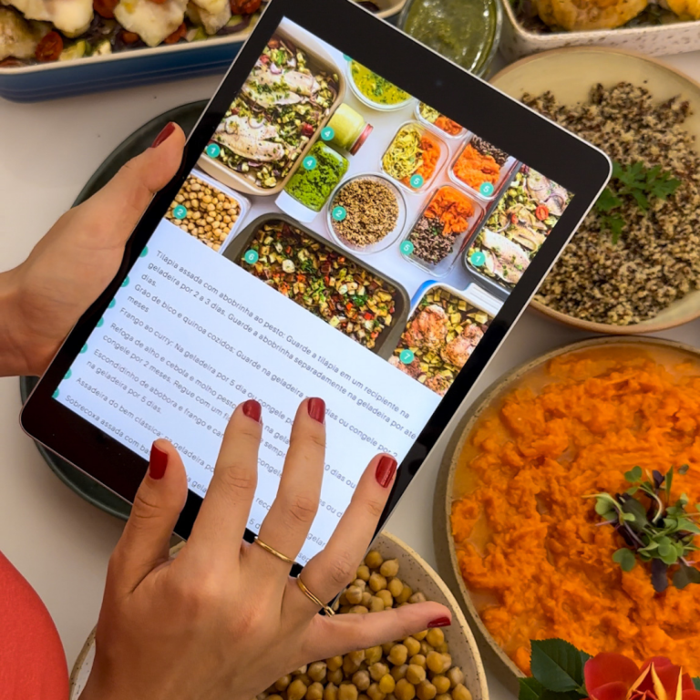 – Coloca em prática cardápios guiados, com lista de compras e plano de execução em vídeo – aprendendo +de 70 receitas – e passa a ter refeições saudáveis na sua rotina desde a primeira semana.
