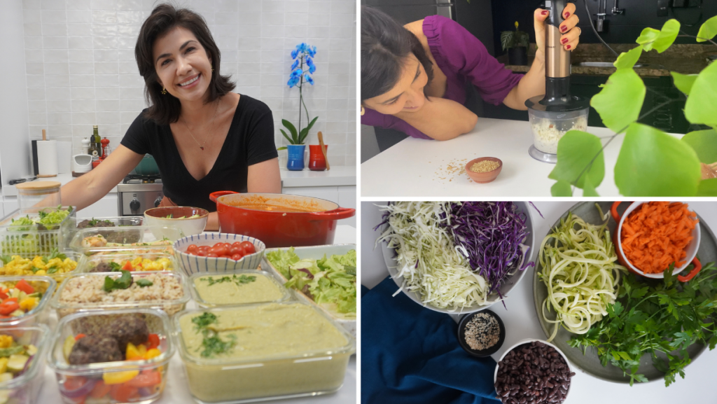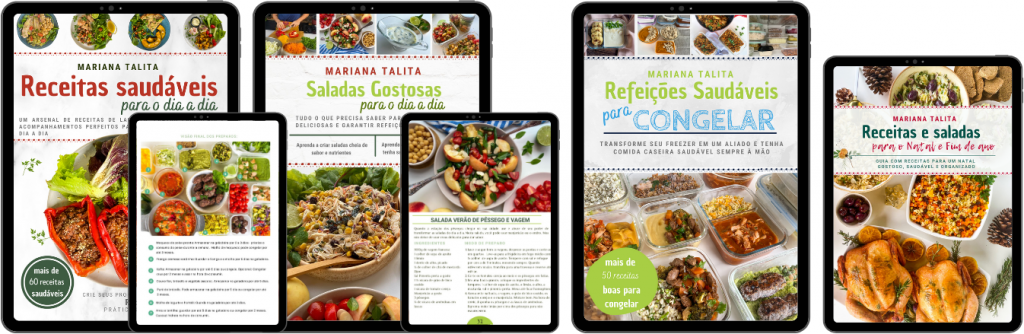 Coletânea Saudável no dia a dia: Aqui você encontra as minhas melhores receitas para o dia a dia – em formato de cardápio semanal. Assadeiras com vegetais, pratos únicos, molhos, pastinhas, temperos, pratos com vegetais, ensopados e preparos bases e pratos que ficam prontos em menos de 15 minutos.