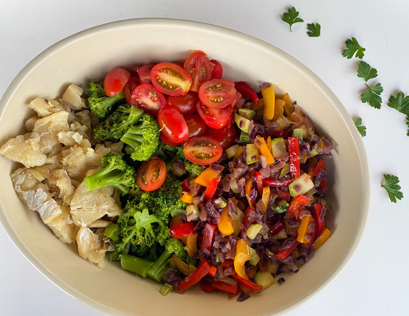 Nesta salada, vamos “pegar emprestado” os sabores tradicionais das saladas de bacalhau, mas vamos substituir a batata inglesa por doses extras de vegetais do grupo A (neste caso, a abobrinha e o brócolis). O resultado: uma salada de bacalhau low carb deliciosa para o dia a dia!